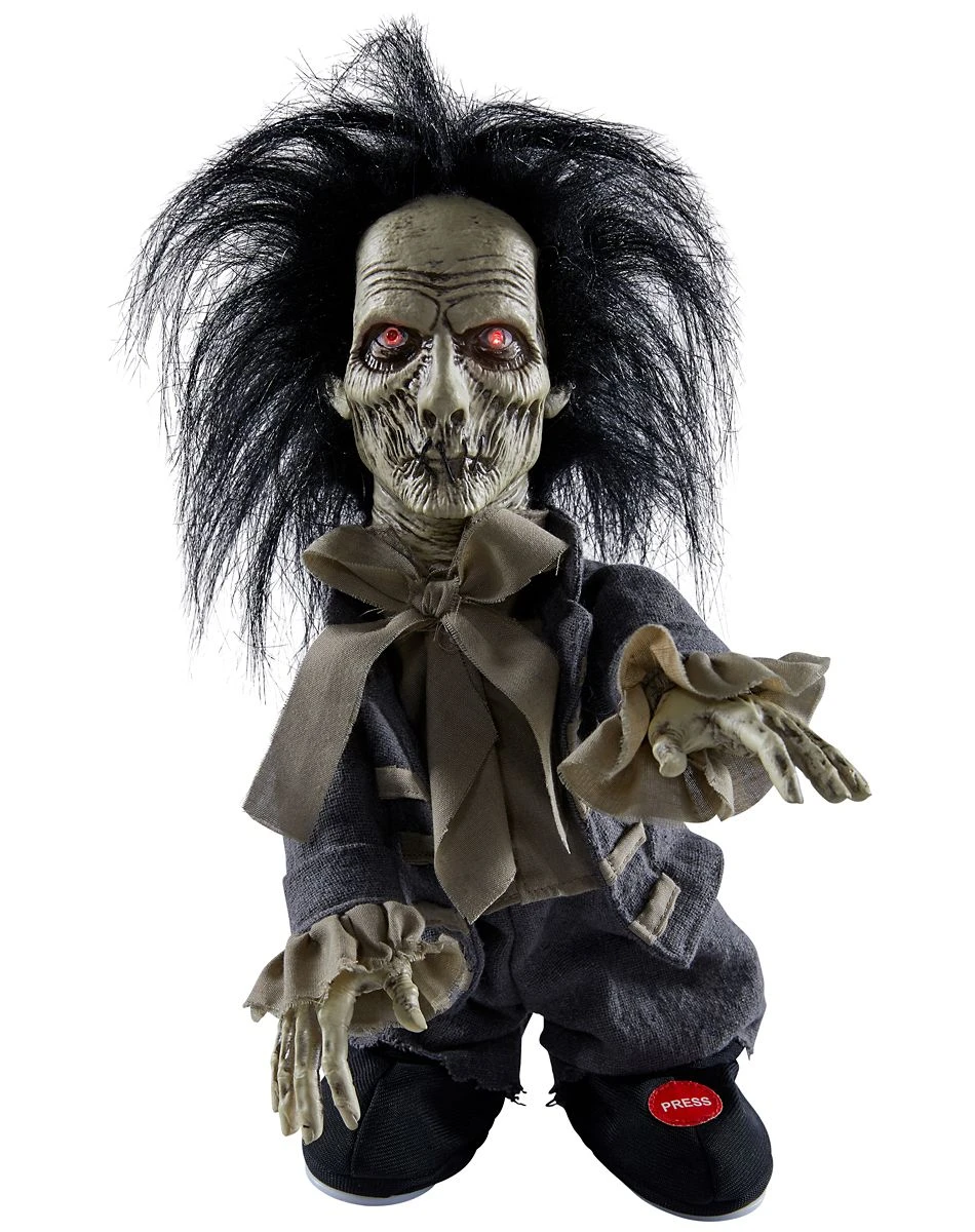 Resurrect Billy Butcherson this Halloween and make him into the perfect indoor decoration. Watch as Billy brings his once dead limbs to life and walks like a zombie through your home. Hocus Pocus is ready to make your Halloween home wicked, and Billy is the perfect way to get started.Â