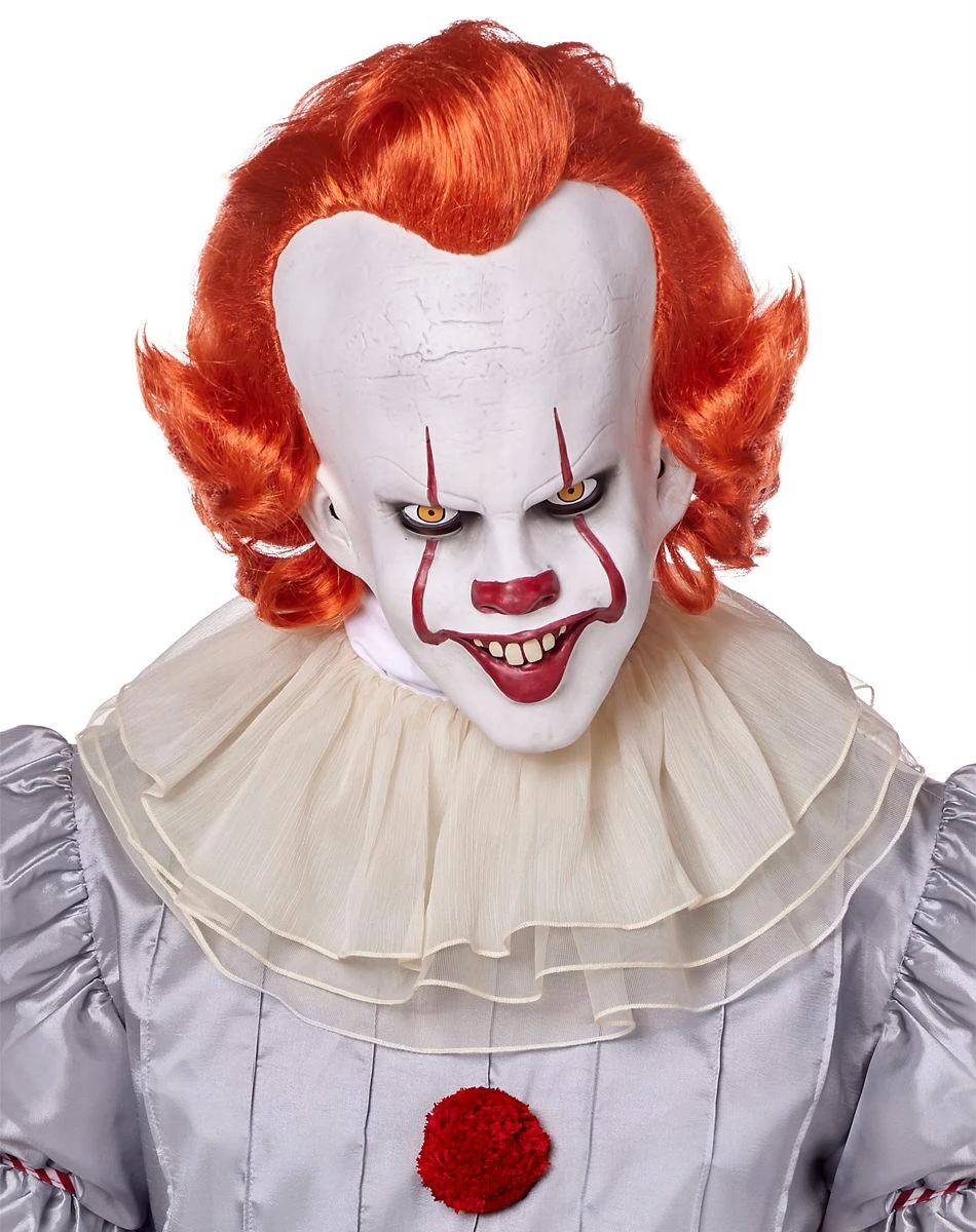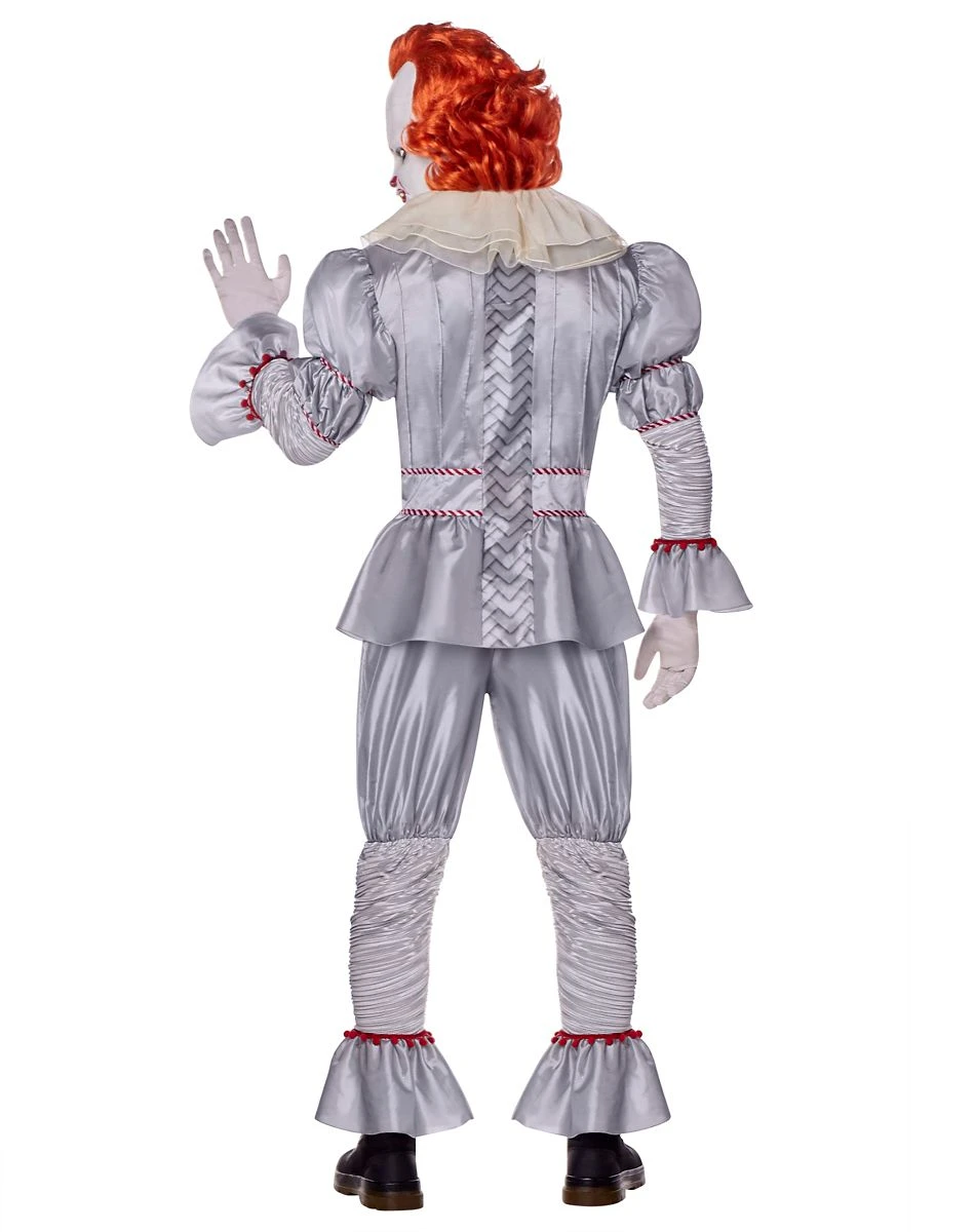 You’ll be craving the sweet taste of fear this Halloween when you show up to the costume party wearing this officially licensed Deluxe Pennywise Costume. This deluxe costume includes a full Pennywise outfit that looks just like it does in the film including a gray pleated shirt, ruffled clown pants, a collar, and a terrifying latex mask complete with fiery red hair and wicked smile. You’ll look like you’ve come straight out of the Derry sewers in this high-quality Pennywise costume.Â