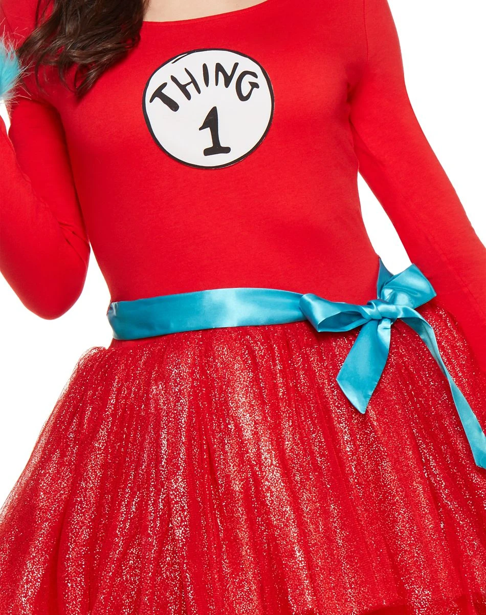 You’ll be the cutest thing in the building this Halloween when you dress up in this Dr. Seuss tutu dress! The long sleeve red dress with attached glitter tutu will have you looking feminine and gorgeous all at once! Slap on your Thing patch, add your headband and tie up your belt! You’ll be ready to join your crew for some happy Halloween-ing!