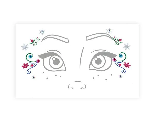Accent your face with colorful and fun decor from the officially licensed Frozen Anna Decals. The decals feature pink flowers, teal specks, and black swirls. The playful Anna would love the way they make your eyes sparkle!