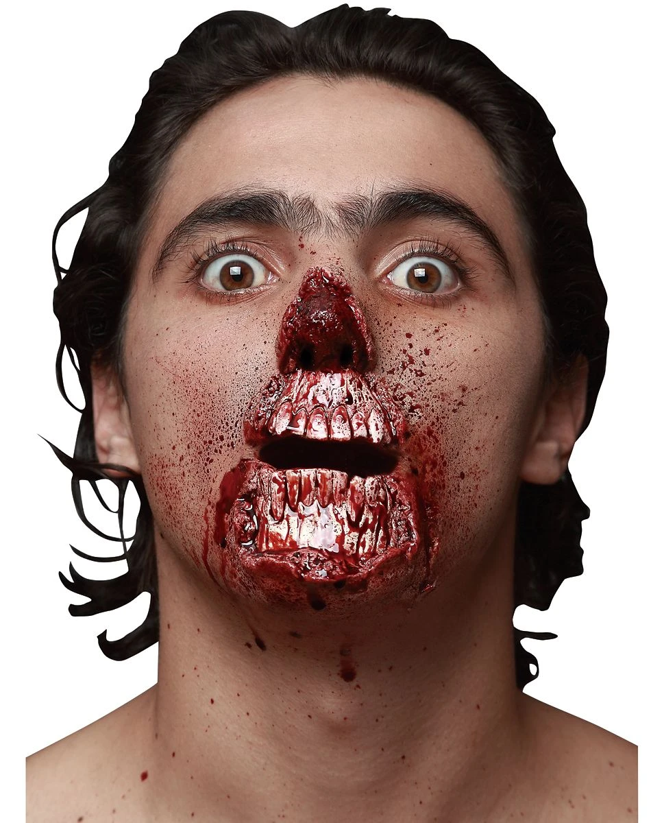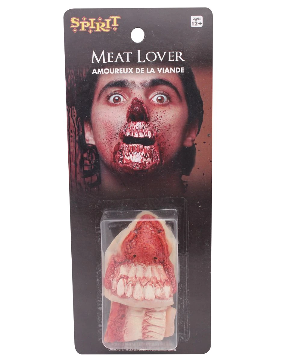 Hungry for some flesh this Halloween? You’ll sure look like it with this meat lover appliance kit. Feast on the flesh of others with this gory prosthetic that features a gruesome skinless mouth and nose. A perfect addition to any zombie costume.