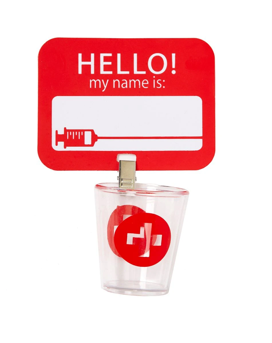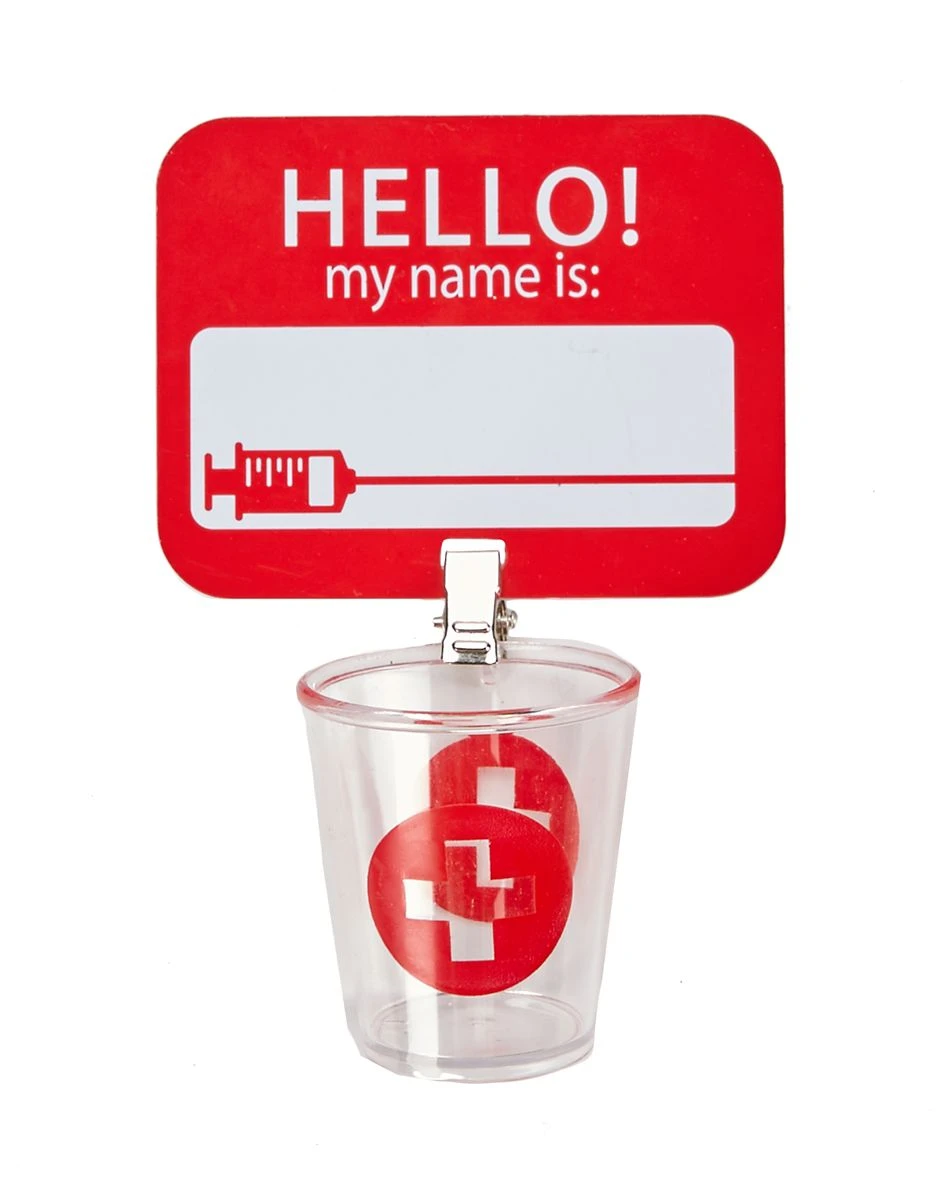 Here’s a prescription for Halloween fun – complete your naughty nurse or cute Candy Striper costume with this clever name badge. The Nurse Name Badge is equipped with a handy shot glass – you determine the proper dose.