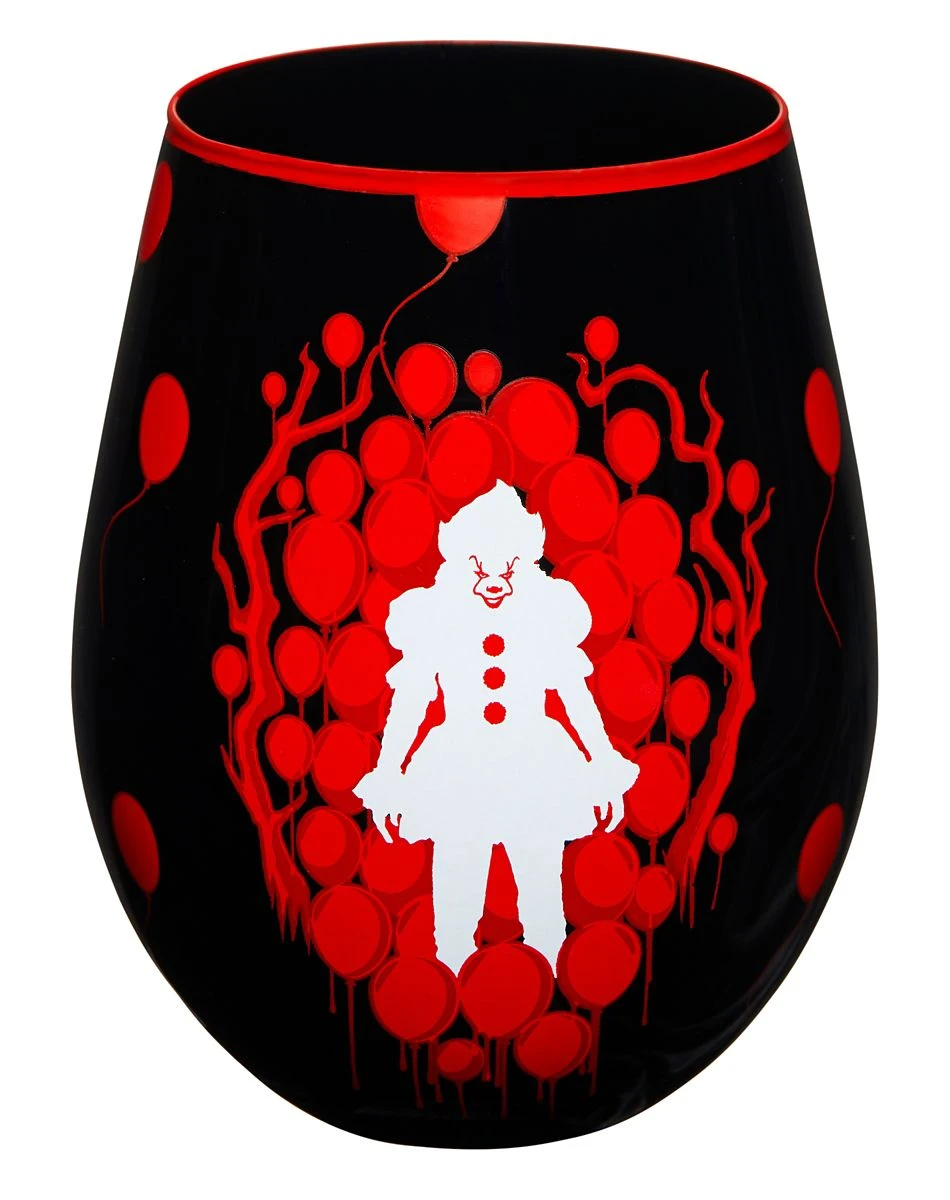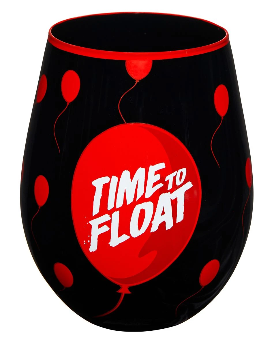 Share a drink with your favorite clown, Pennywise! This stemless It Chapter Two glass features a slick black design adorned with red balloons, a Pennywise graphic, and a chilling “time to float” logo.