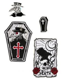 Complete your plague doctor style with this patch and pin set! Featuring two iron-on plague doctor-inspired patches and two sinister pins, this set will instantly make your personal items look spooky!