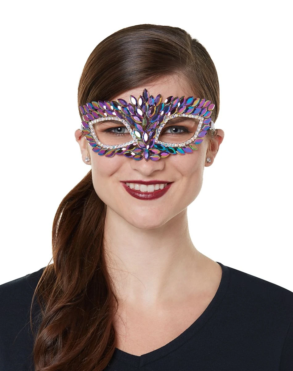 All eyes will be on you when you wear this Rhinestone Oil Slick Eye Half Mask! Whether your style is inspired by peacocks, fallen angels, ballerinas, or some other whimsical being, this stunning eye mask will add the perfect amount of sparkle and shine to your look.