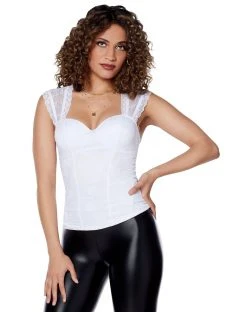 Get the just the right shape for your Halloween look with this white lace corset! With its cap sleeves and stylish design, this corset can be paired with any skirt, shorts, bottoms or leggings for an unforgettable outfit.